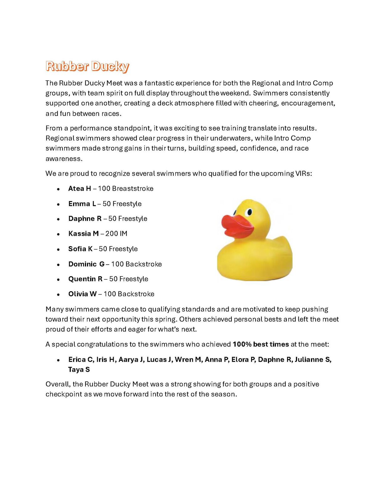 This section highlights swim meets throughout the year and features recap articles written by our coaches, celebrating performances, progress, and team spirit.